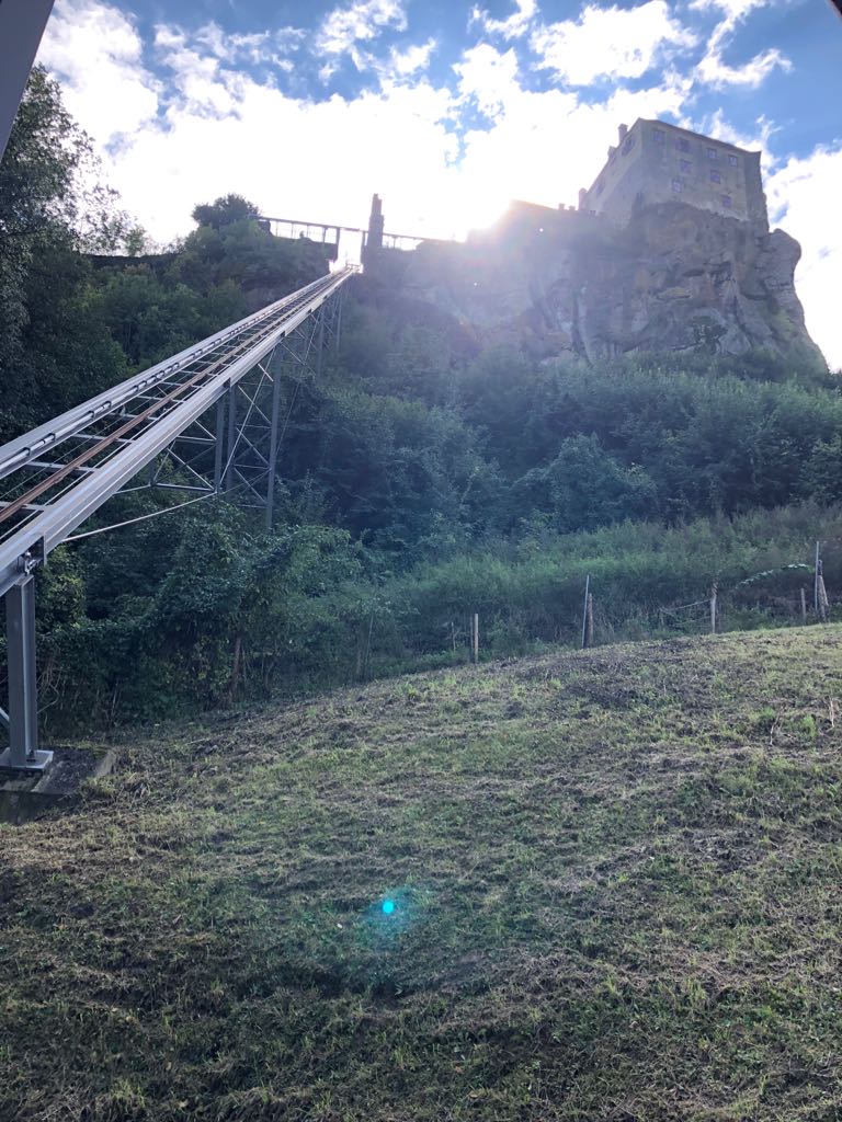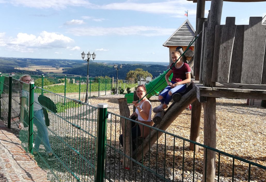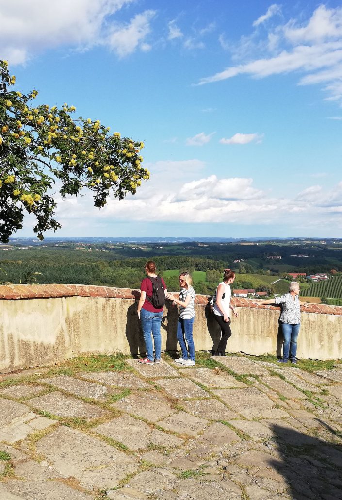 Die zweite Station war die nahe Riegersburg. Nein, sind nicht zu Fuß gegangen, wir sind mit dem extrem steilen Gondelaufzug über die Rückseite des Berges zur Burg gefahren.